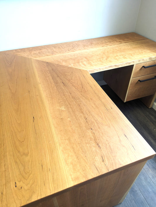 Cherry L-Shaped Desk with Drawers