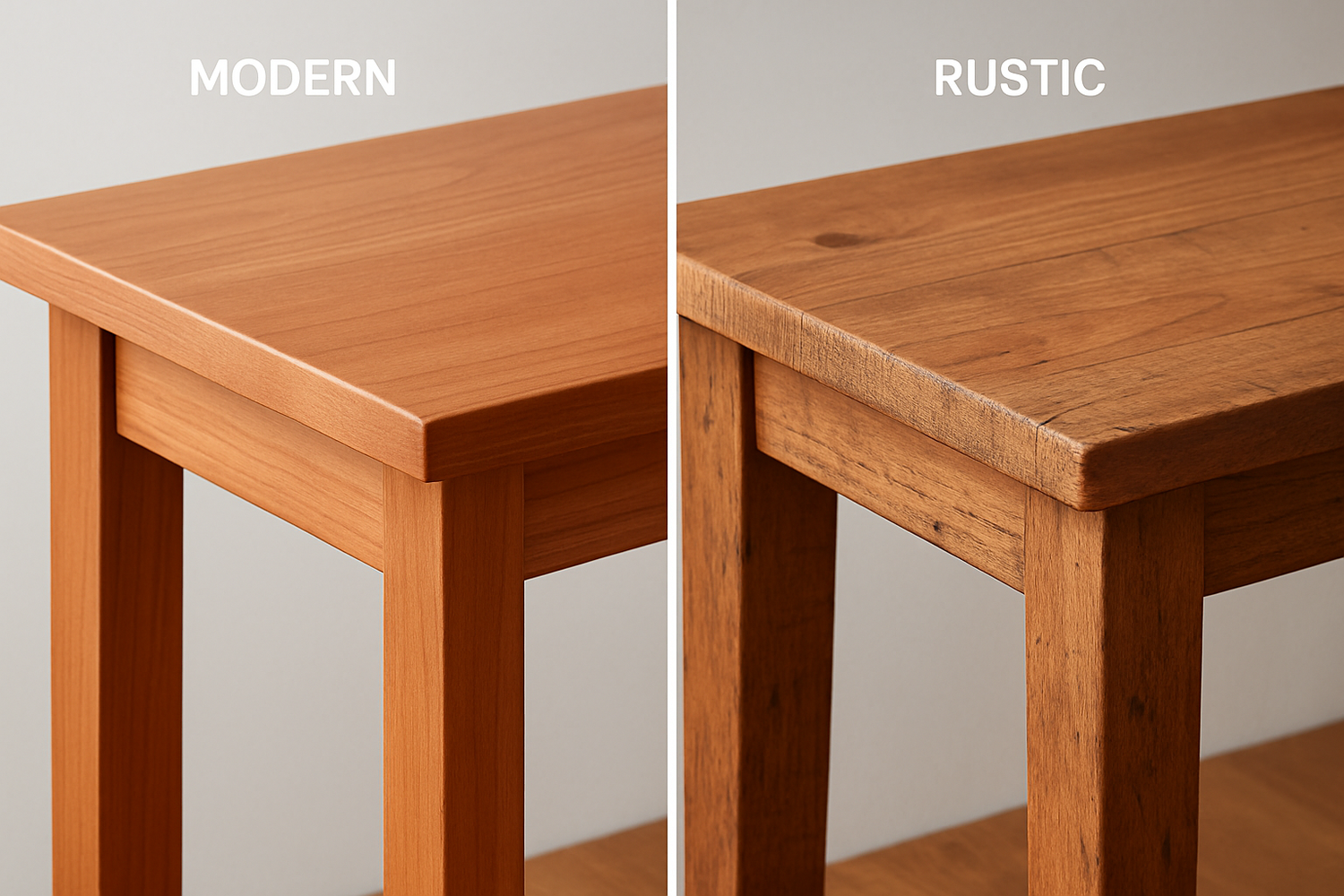 Modern style features clean lines, minimal design, and smooth finishes—perfect for sleek, contemporary spaces. Rustic highlights natural textures like knots, grain, and live edges, offering a warm, timeworn feel. Modern is refined and minimalist; Rustic is organic and character-rich. Each one brings a unique personality and presence.